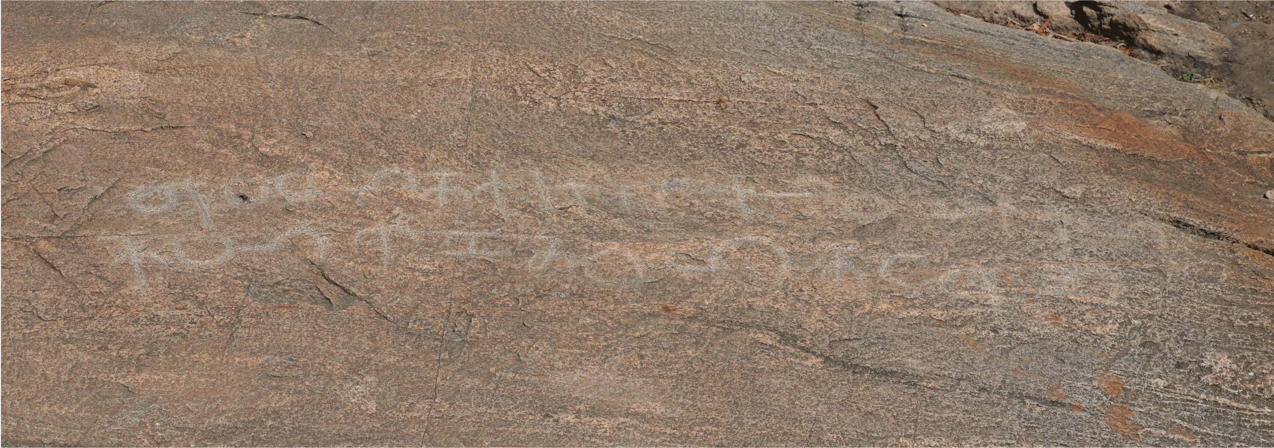 On the sloping floor of a rocky outcrop known as Perumāḷkōyil Pāṟai above a deep mountain pool called Tēppāḻi. The inscription is eroded by rainwater flowing over it into the pool, but still legible.
