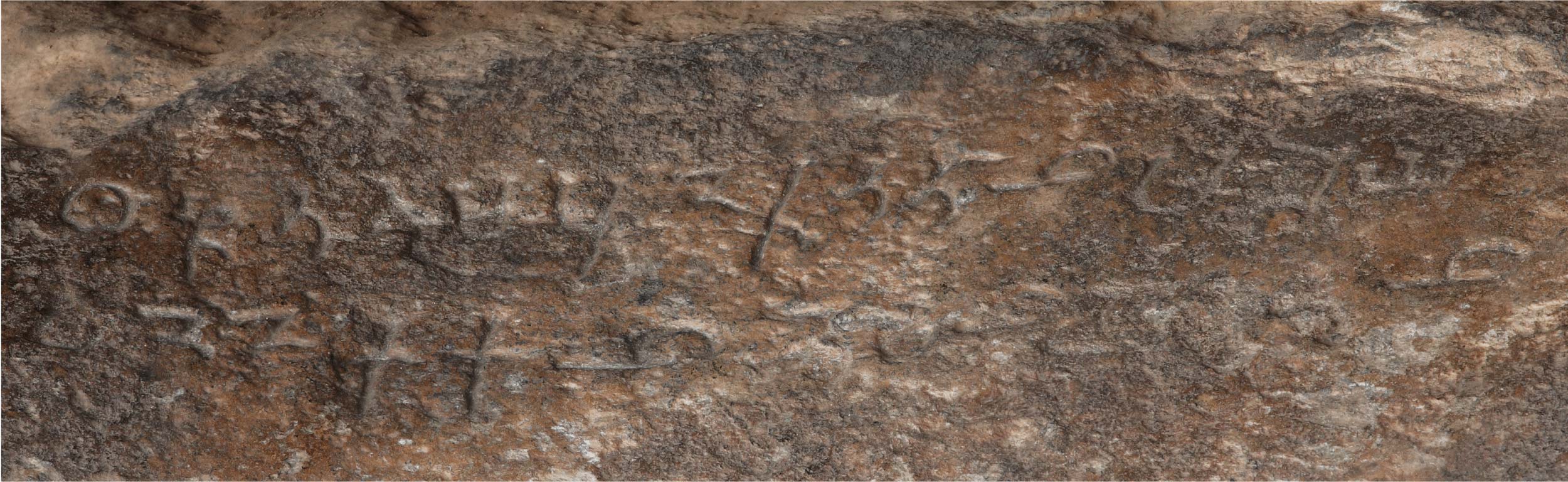 2. The horizontal line seen at the lower end of the letter is a fault in the rock.