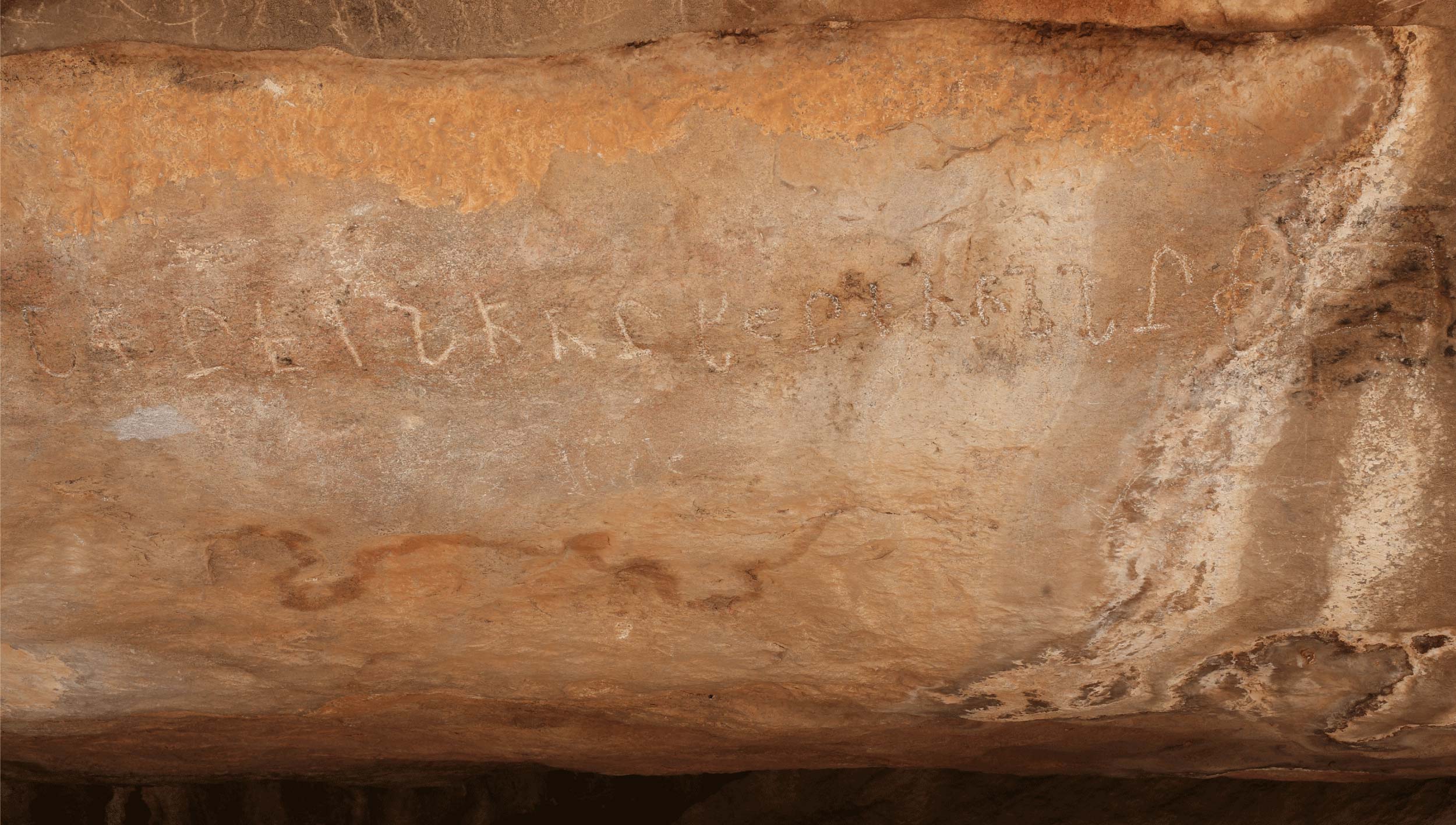 The third inscription (from left) on the brow of the cave. This is read as the middle inscription by HKS, KVS and others following their lead.