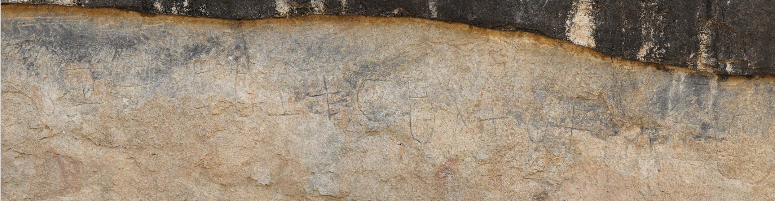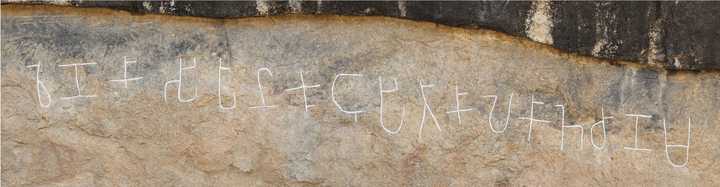 3. The medial -ā stroke of this letter lies along a natural groove in the rock.