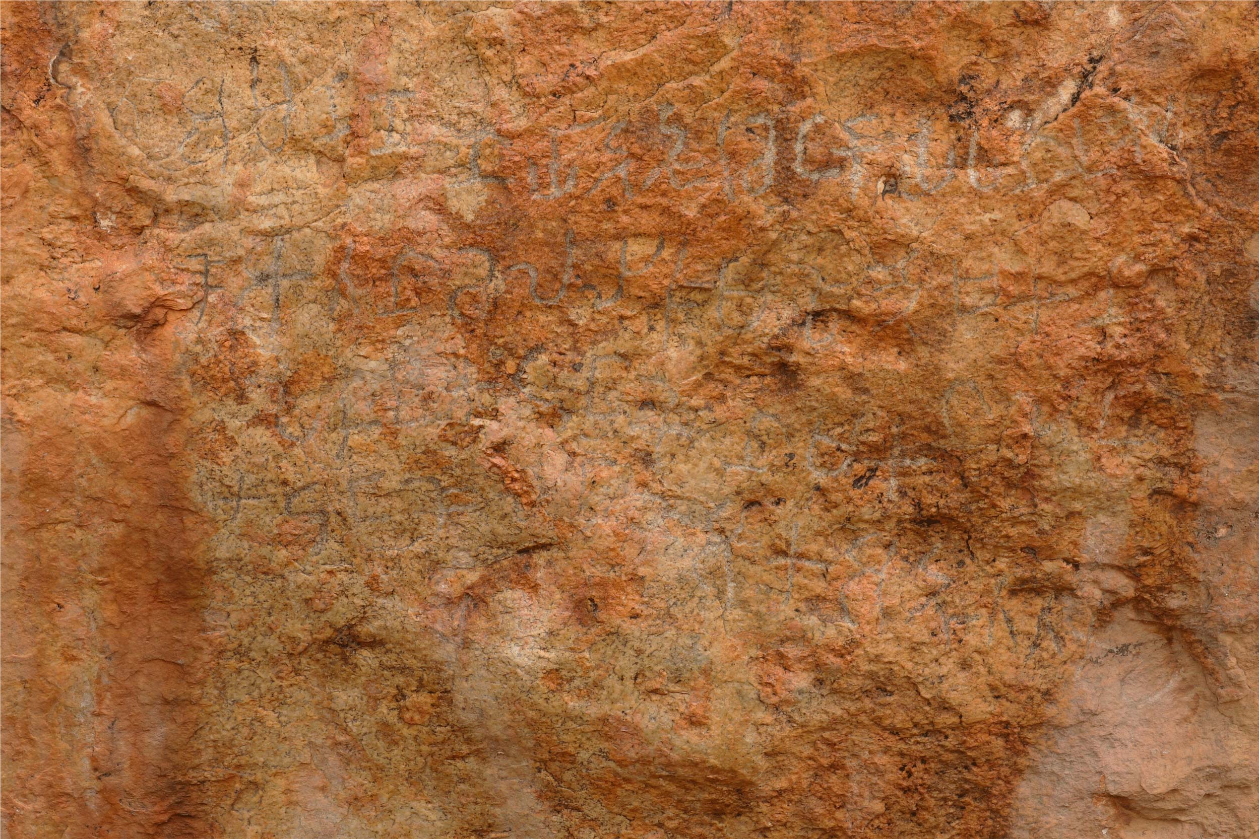 The lower inscription on the brow of the western cave on the southern face of the Āṟunāṭṭārmalai hill; too weather-worn and faint to produce a legible estampage, but clearly visible to the naked eye.