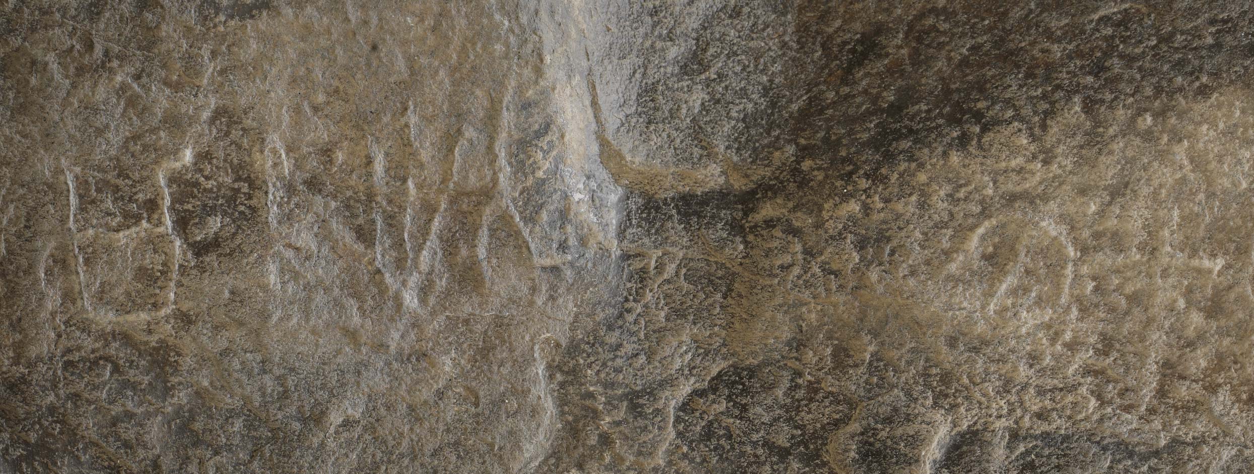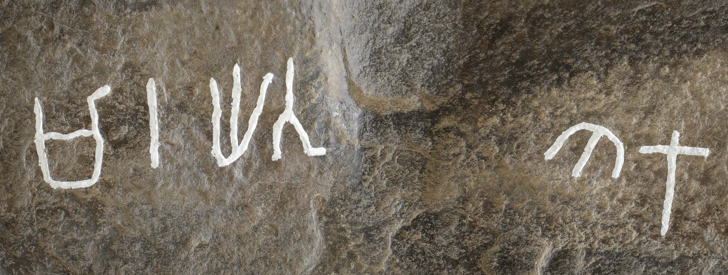 upside down. The second segment is above the stone bed at left and engraved normally.